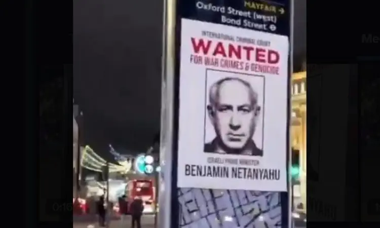 Para aktivis menempelkan poster bergambar Netanyahu di bus, jalanan, dan tempat-tempat penting di London. Poster tersebut merujuk pada surat perintah penangkapan dari Pengadilan Kriminal Internasional (ICC) yang dikeluarkan pada November 2024.