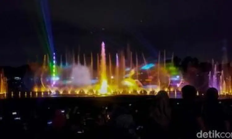 Atraksi ini menyuguhkan harmoni antara tarian air dan permainan lampu warna-warni, menciptakan suasana malam yang semarak serta memikat perhatian pengunjung.