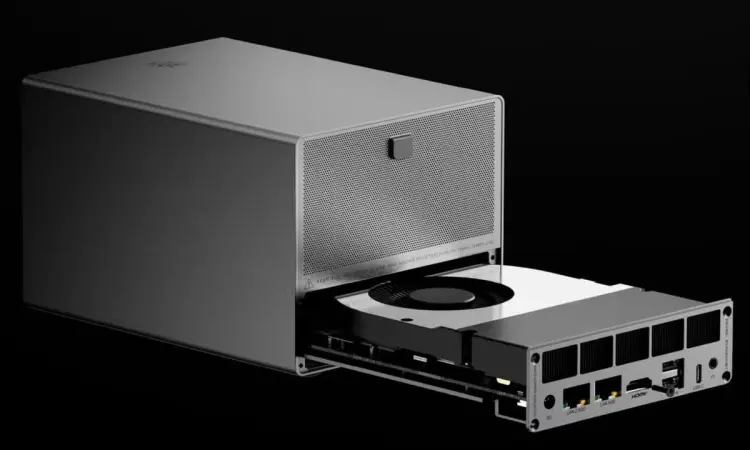 Alih-alih mengunci pembeli ke dalam satu platform, sistem ini menggunakan mainboard yang dapat dilepas dan dapat ditukar oleh pengguna tanpa mengganti seluruh enclosure. Desain modular mengandalkan laci tarik di dasar chassis, yang menampung mainboard beserta CPU, memori, penyimpanan, komponen pendingin, dan perangkat keras nirkabel.