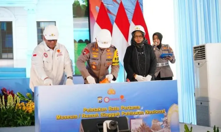 Setelah ziarah, Kapolri melaksanakan peletakan batu pertama pembangunan Rumah Singgah atau Museum Pahlawan Nasional Marsinah di Kecamatan Sukamoro, Nganjuk, Jawa Timur.