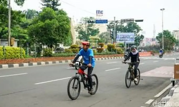 Margonda Raya, Depok, terlihat lengang pada awal tahun 2026. Jalan yang biasanya dipadati kendaraan kini longgar, memberikan kesempatan bagi warga untuk bersepeda santai dan menikmati suasana yang berbeda.