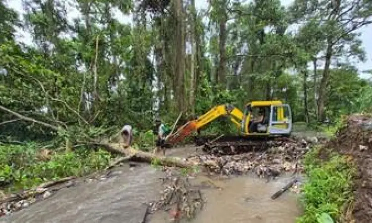 Dinas Pekerjaan Umum dan Penataan Ruang (PUPR) Provinsi Banten bersama BBWS C3 mengerahkan ekskavator ke lokasi untuk membersihkan sampah dan pohon tumbang yang menghambat kelancaran aliran air.