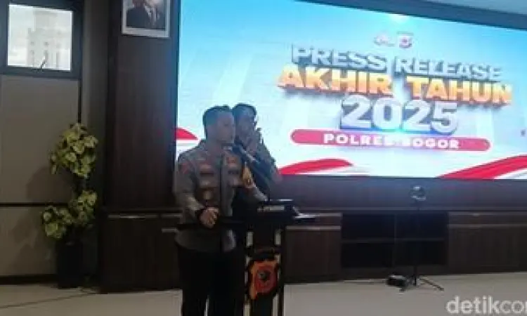 "Terkait penegakan hukum, kami sampaikan bahwa jumlah crime total sebanyak 2.257 dengan crime clearance sebanyak 1.056. Terdapat tiga kejahatan yang cukup menjadi perhatian. Yang pertama adalah curanmor, kemudian curat (pencurian dengan pemberatan), dan pencurian dengan kekerasan," kata Kapolres Bogor AKBP Wikha Ardilestanto dalam rilis akhir tahun di kantornya, Rabu (31/12/2025).